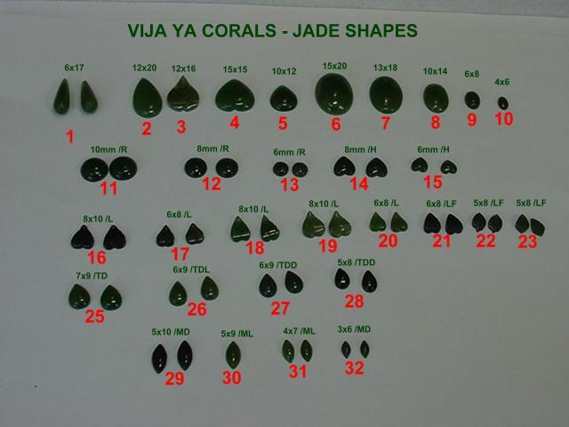 - Assorted shapes of Jades - From Top:Rounds, Ovals, Tear Drops, Marquees, Leafs in all sizes.PIC# 3