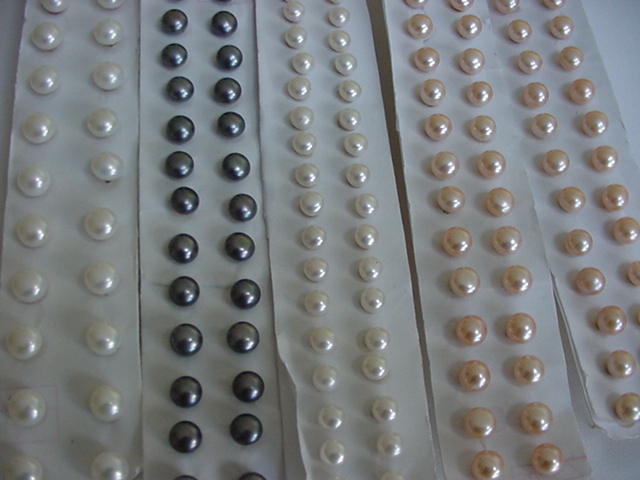 Another sampling of our pearls. As low as $6 per strand of 4mm Button to $65 for 6mm cultured pearl strand - PIC# 27