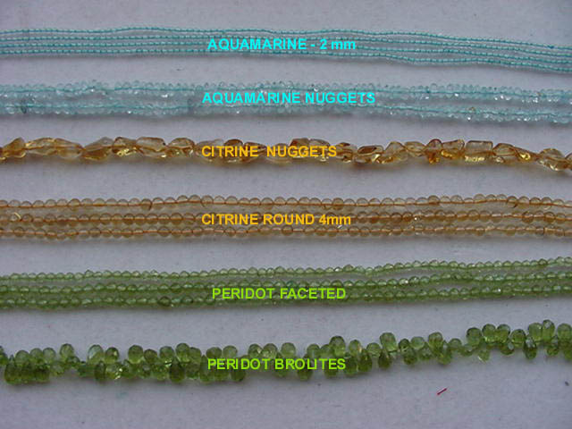 2007 NEW - Assorted Aquamarine (2mm&4mm), Citrine (Nuggets&4mm rounds), Peridot (4mm Round & Brollites). PIC# 17