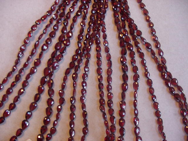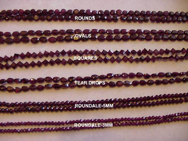2003 NEW - Assorted shapes of Garnets - From Top:Rounds, Ovals, Squares, Tear Drops, Roundales (5mm&4mm) - $15 to $18 per Strand. PIC# 6