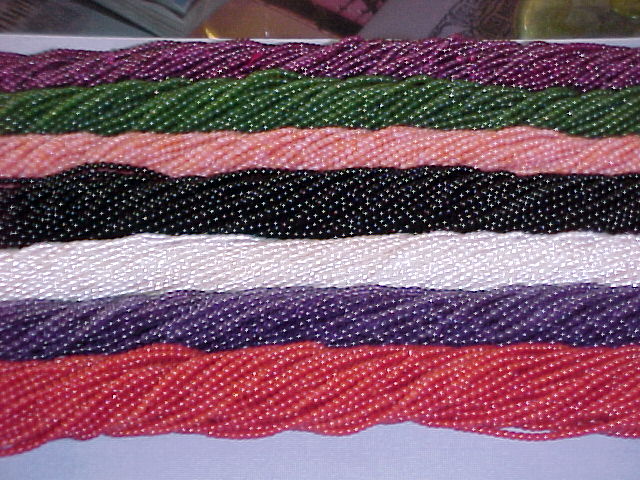 All natural 2mm beads. 1-Coral,2-Blue Sunstone,3-Green Onyx, 4-Turquoise,5-Black Onyx,6-Hematite,7-Neon White,8-Carmelion,9-Pink Coral,10-SandStone,11-Lapis PIC# 11
