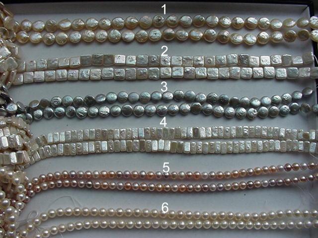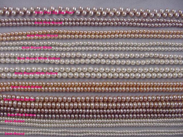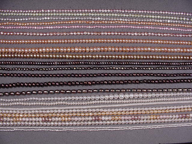 Another sampling of our pearls. As low as $6 per strand of 4mm Button to $65 for 6mm cultured pearl strand - PIC# 27