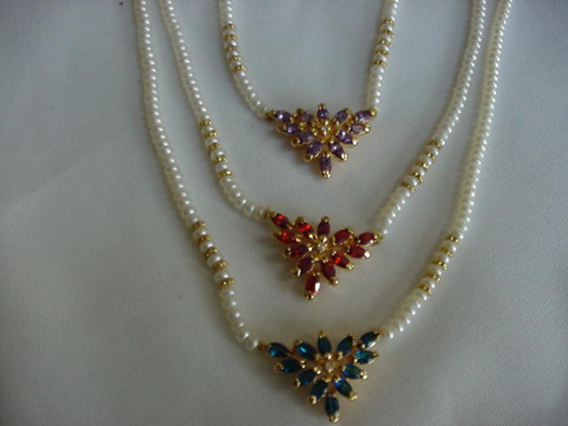 Pearl Necklaces with CZ Pendents - Ready to wear -- PIC#22