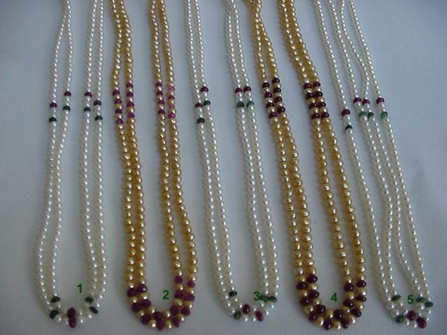 3 mm Culture pearl ready to wear two line necklaces with Ruby & Emerald Beads - PIC#16